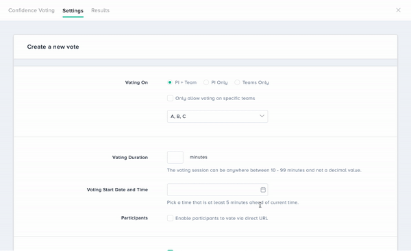 With the time, date and teams set, you can now select how the results for the votes shall be handled.
