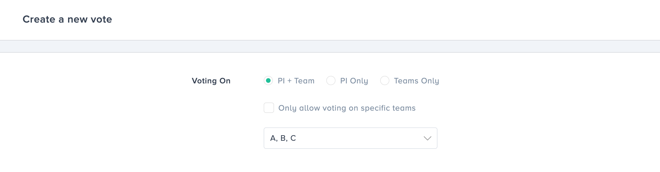 Voting only for how the teams performed in the Program Increment. Once you have selected an option, you will then select the teams that will be allowed to participate. When you are selecting the PI + Team or Teams option, you will be displayed with a check box that says “Only allow voting on specific teams”. This will enable you to create a separate URL for your selected team(s) that can be shared with the team members that are not a part of Kendis.