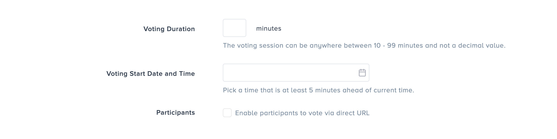 The duration of the session can only be set in minutes along with a date for when you would like to commence the Confidence Vote session.