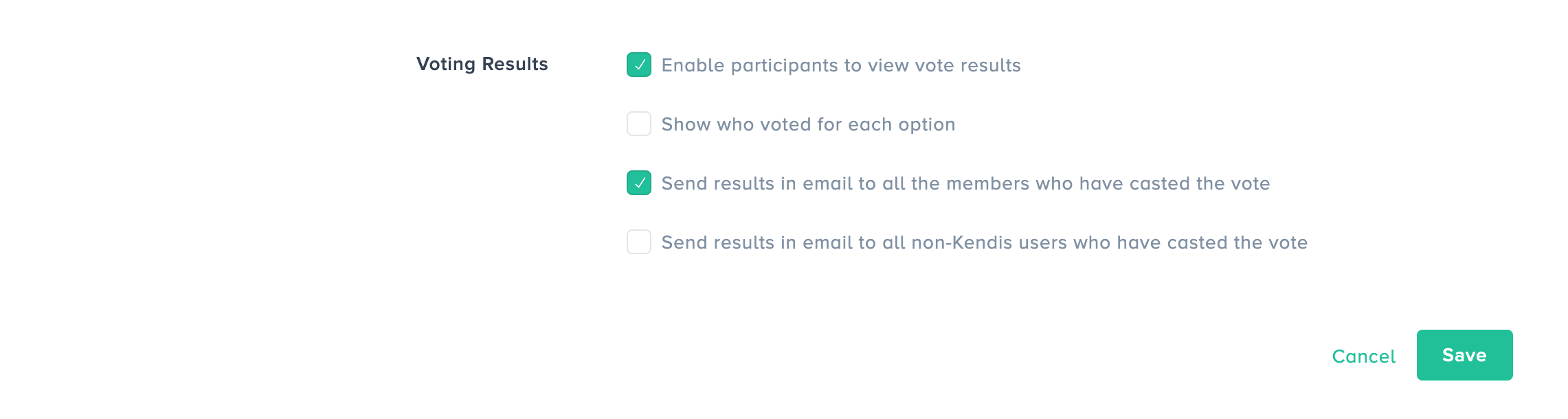 The results for the Confidence Vote can also be sent to the team member’s email that are a part of Kendis or outside of it.