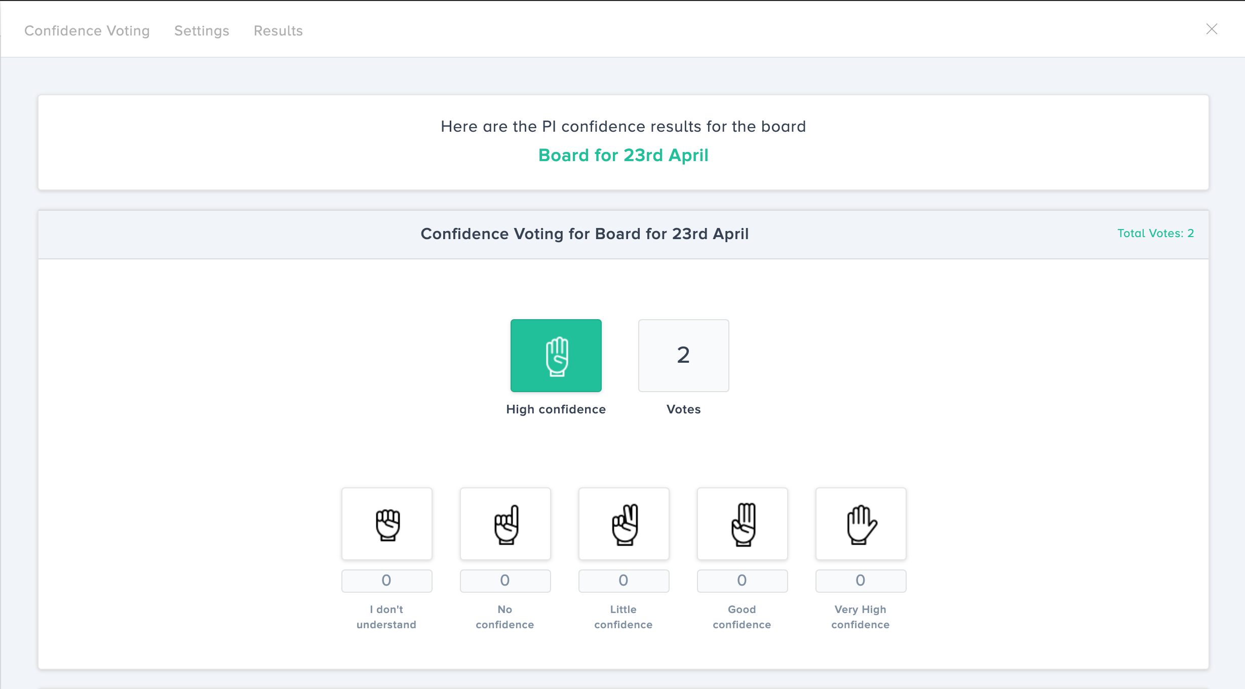 Once the session is over, the results for the confidence vote can be viewed. If the option for Enable participants to view the results or Show who voted for each option is checked, then the users other than Super Admin, a user with Admin rights or a user that has the permission to Edit Board can view the result and who voted. But if these options are not checked then only the super admin or admin can view the results.