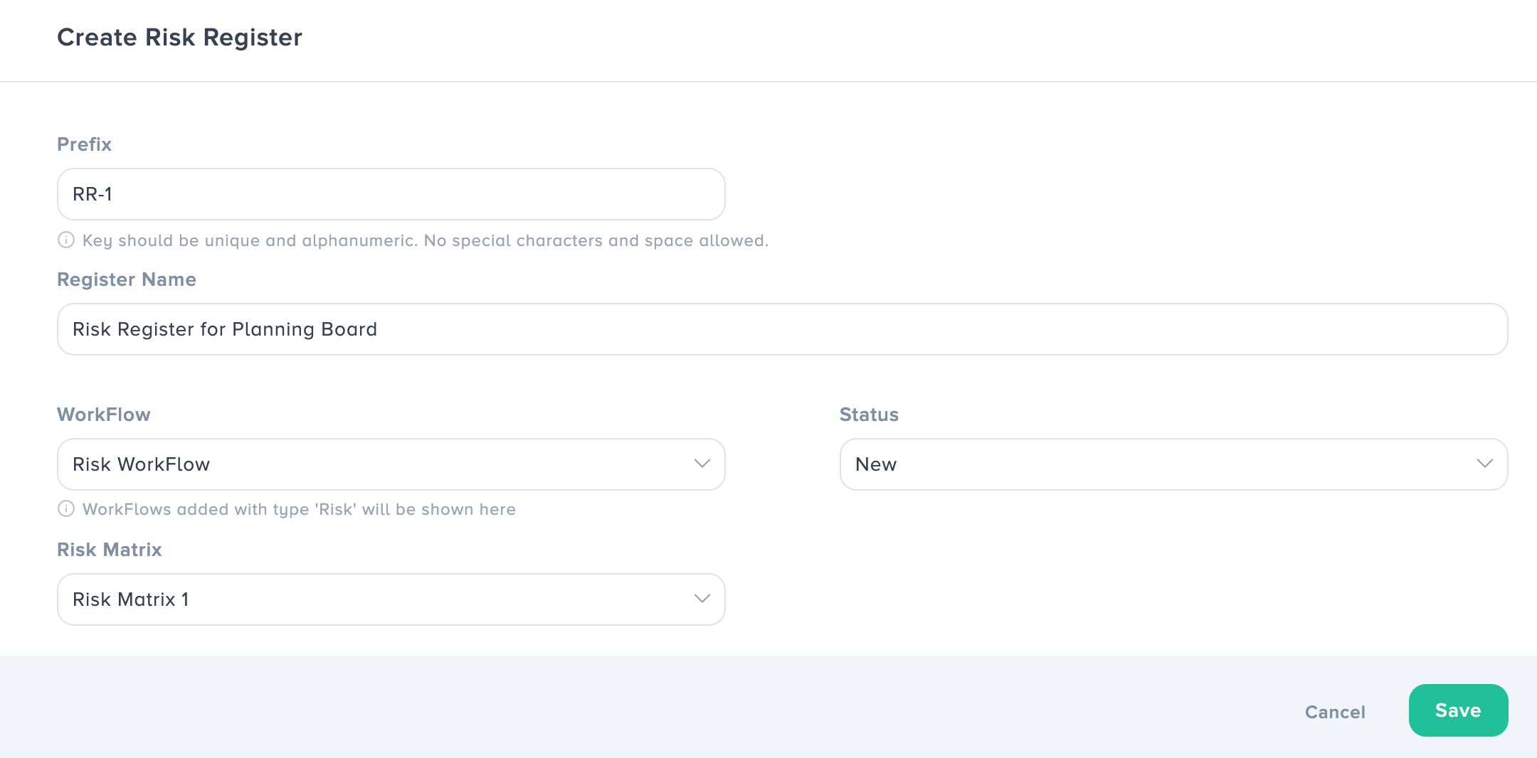 - Select or create a workflow that will enable you to define and track the steps involved towards taking specific actions for your risks. You can also create customized workflows specifically for your risks.