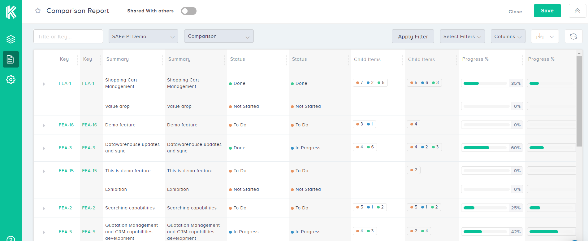 But client requirements can change overnight. Luckily with Agile, you can adjust to these changes quickly. But at the same time, you need a record of these changes. And unfortunately if you are using Jira, there is no way to compare what was done before. It only shows you the current state of the feature. How will you know if there are new features or stories added to the sprint or PI after planning? This is where Kendis has an upper hand.