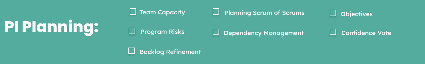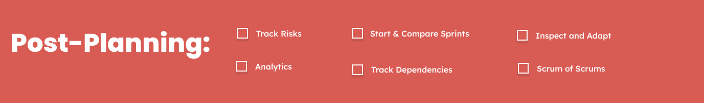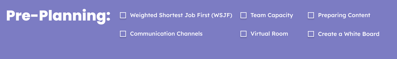 We split the Scrum Master activities into three categories: Pre-Planning, PI Planning, and Post-Planning. During the clinic, we describe each activity and detail best-practices in Kendis. We also provide a free checklist that includes concise descriptions, which is available to download at the end of this article.