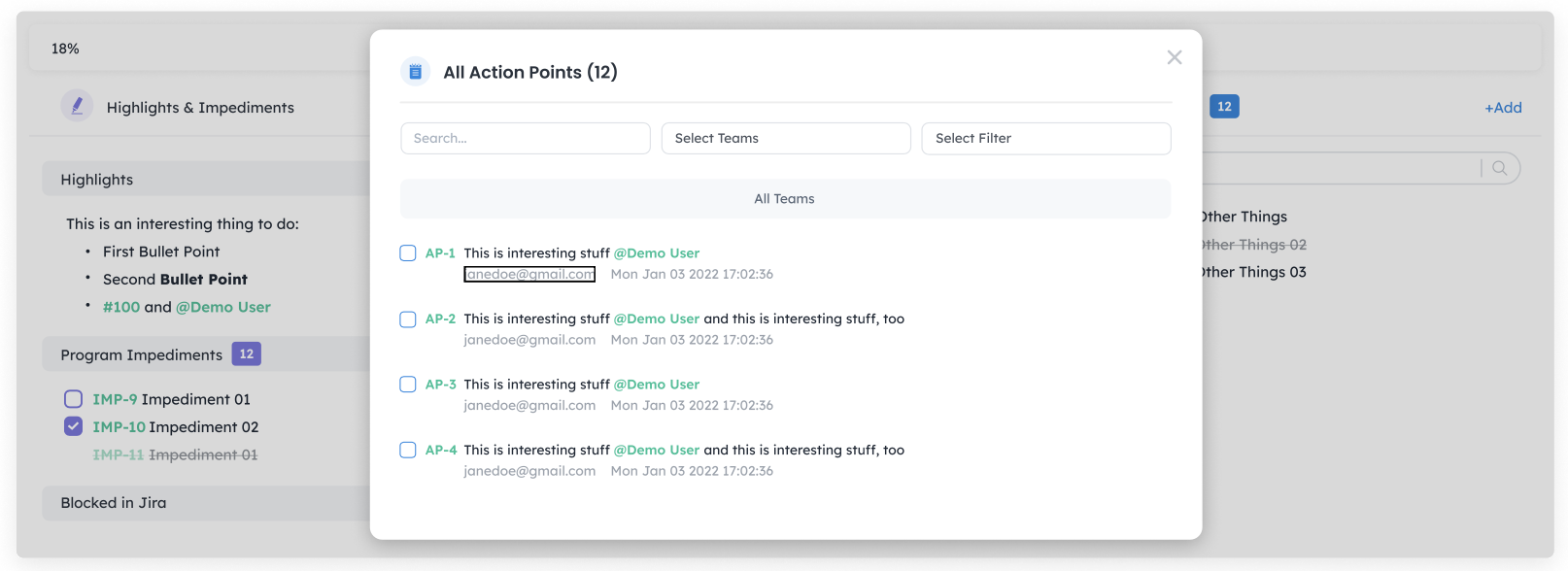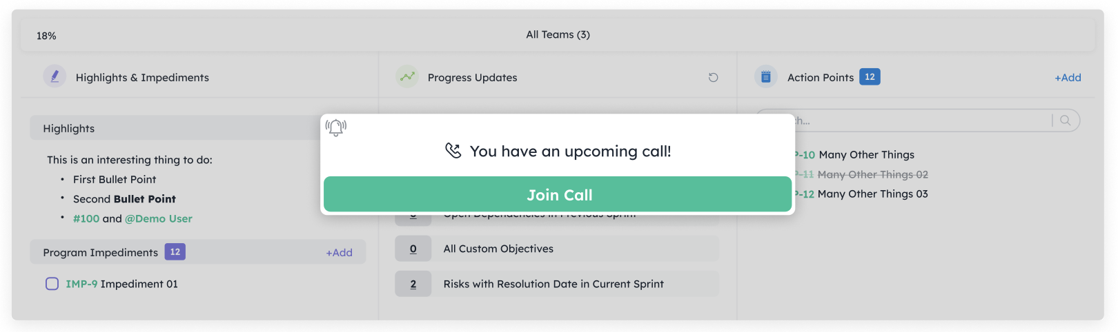 Here is a quick guide to our new Scrum of Scrums Feature. It will improve the tracking of impediments, dependencies, and accomplishments of your Agile teams, as well as revolutionize the way you prepare for and record your ceremonies. This will directly translate to an easier workflow, more productive teams, and overall cost efficiency.